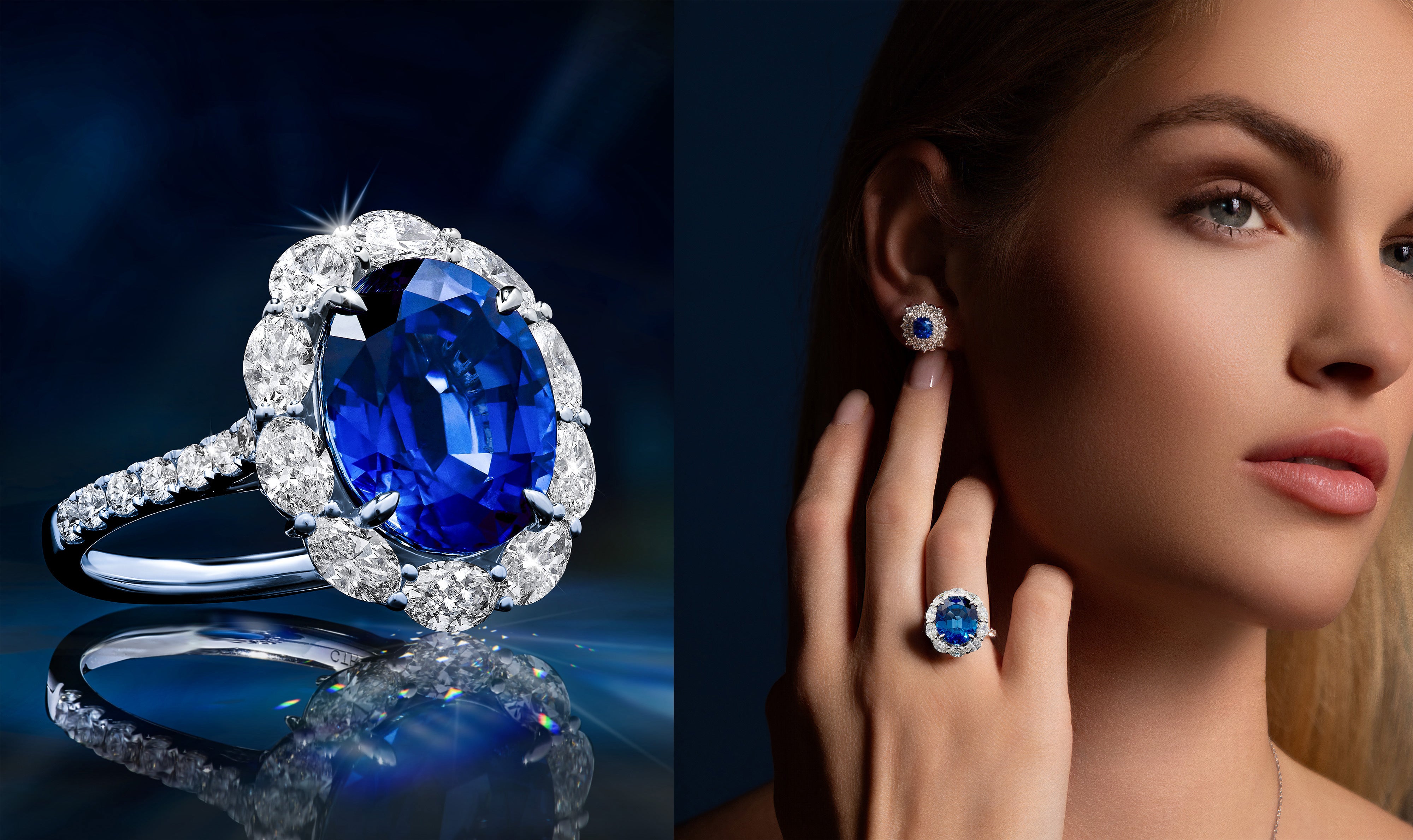 Discover deep blue Sapphires in contemporary and classic